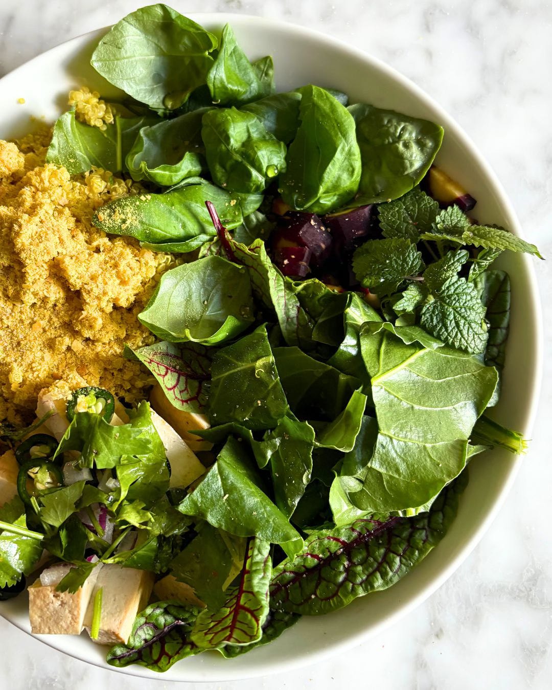 I lean on a few basic foundational elements that make up my template for consistently making sensational salads happen: